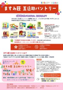 ♦️ますみ荘会場では、恒例の互近助パントリーの他、水島工業高校と中国学園大学の皆さまによるワークショップが行われます。