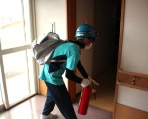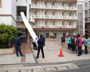 緊迫した雰囲気の中、実践さながらの訓練にて、迅速で安全な避難誘導に取り組みました。